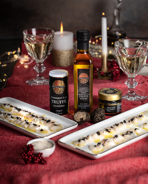 Zubereitung auf Basis von nativem Olivenöl extra, aromatisiert mit schwarzem Trüffel